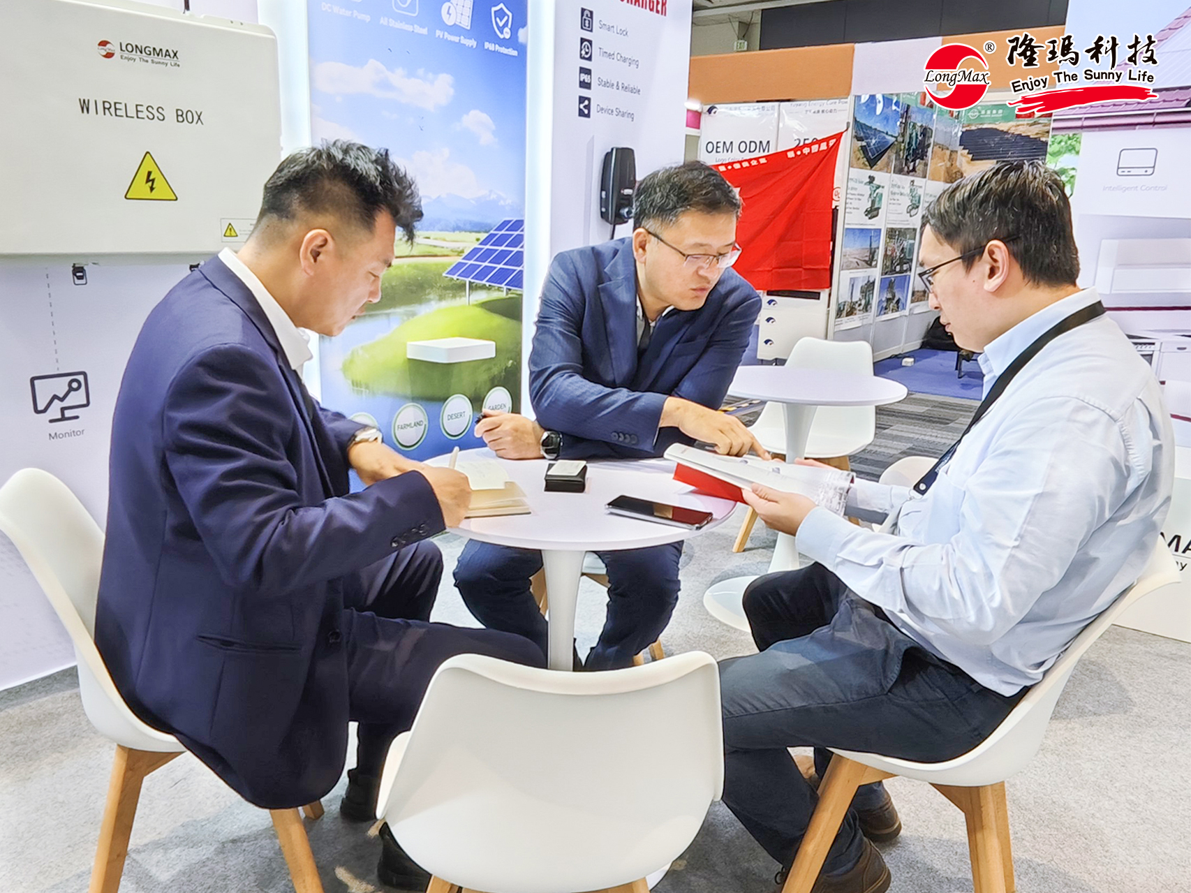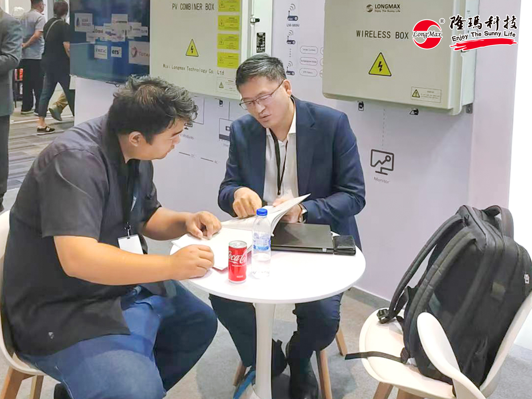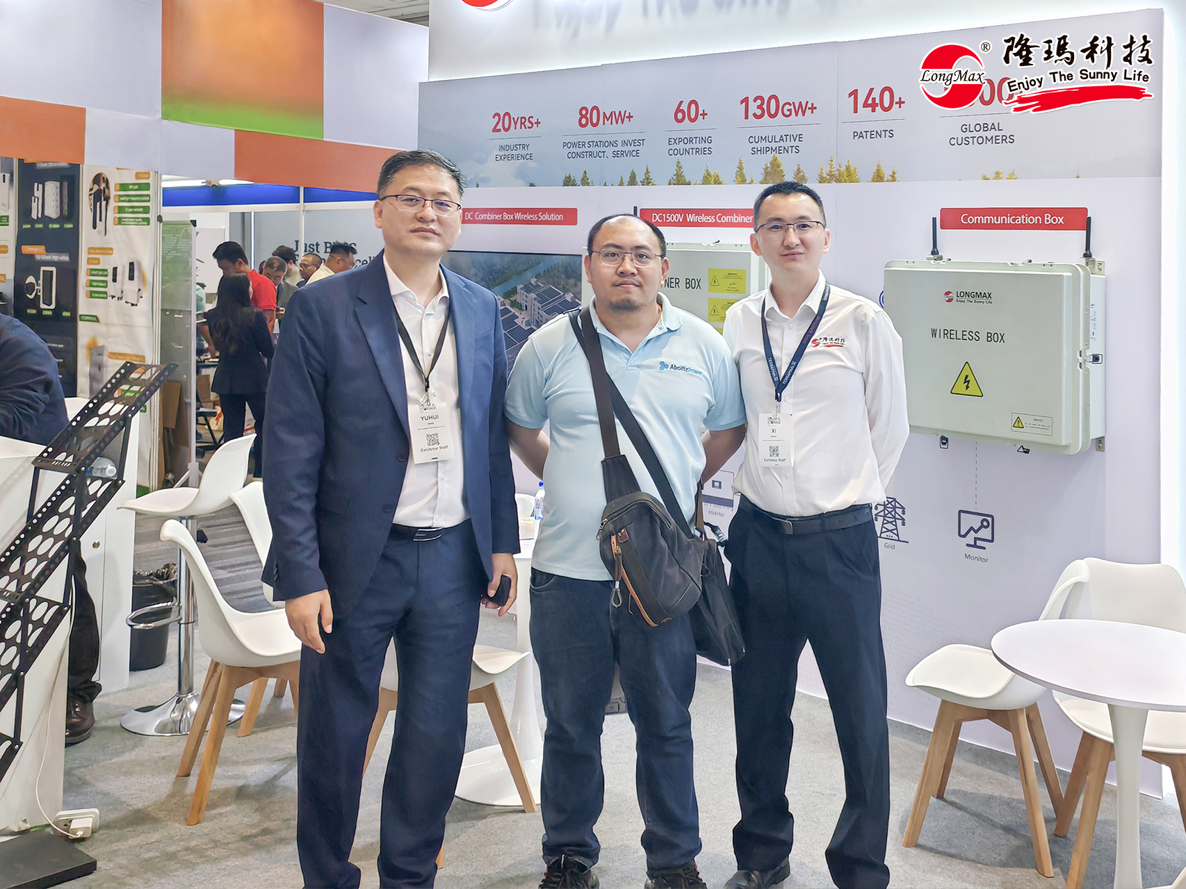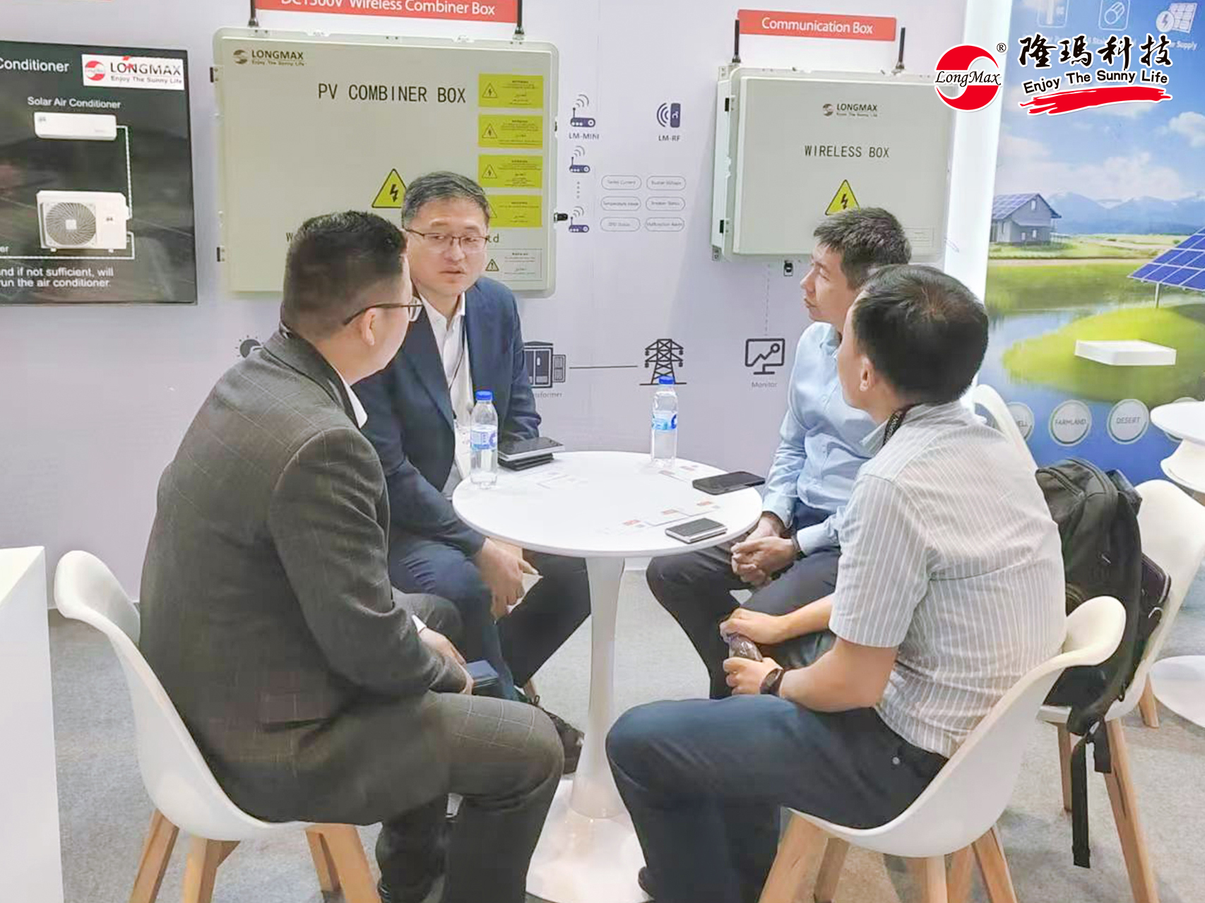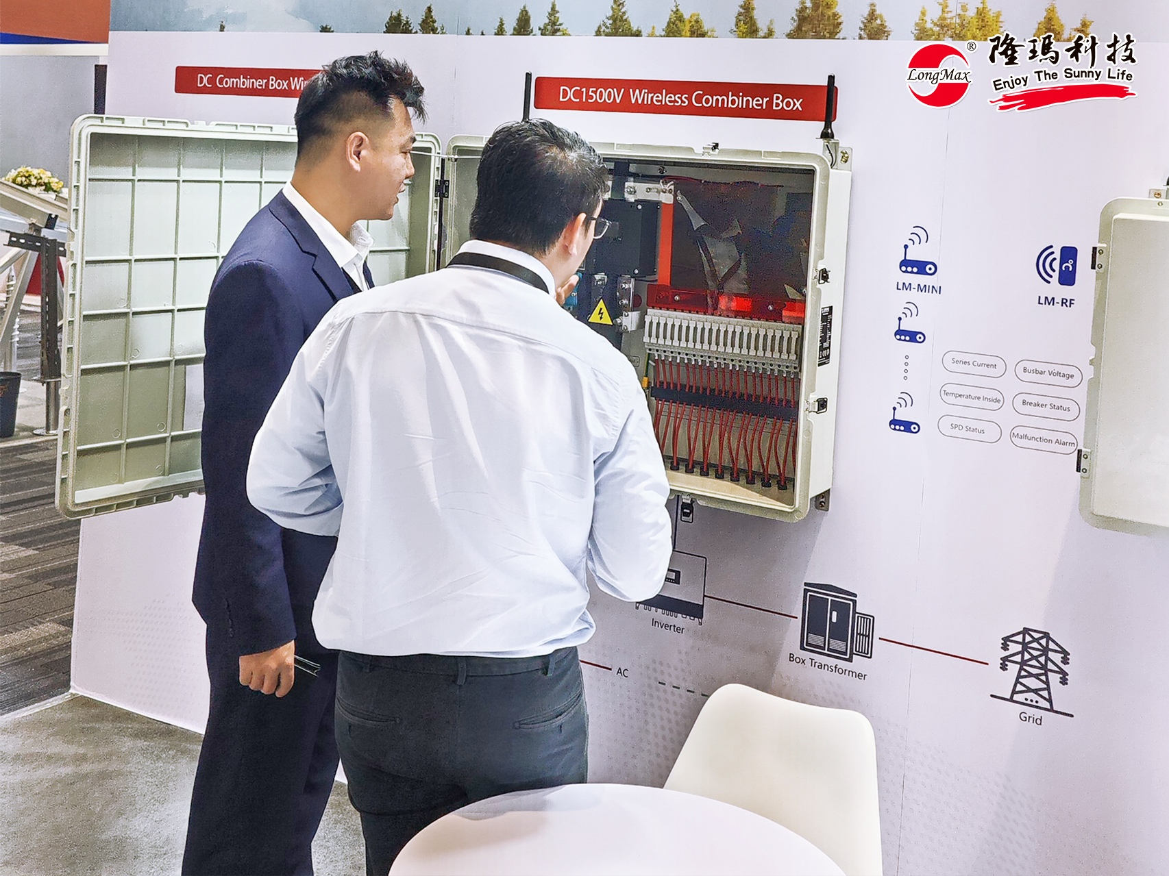 菲律賓,是擁有超過7100座島嶼的千島之國。為應(yīng)對當?shù)靥厥獾乩硖卣鲙淼耐ㄓ嵒?、電場分散與氣候復(fù)雜多變等情況,隆瑪科技堅持技術(shù)創(chuàng)新,在展會上因地制宜推出匯流箱無線通訊方案。