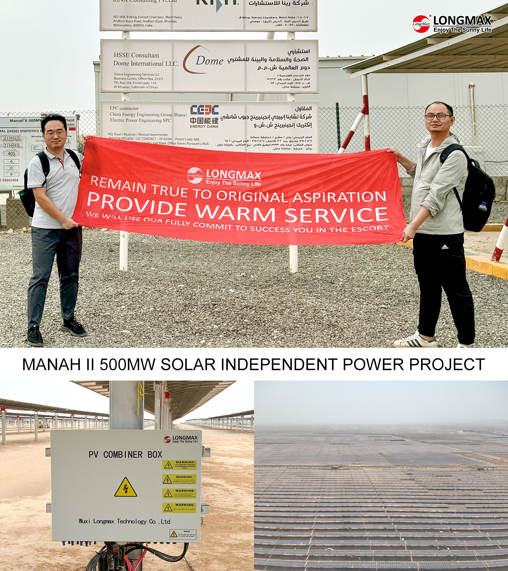 Recently, Longmax Technology's sales and after-sales service teams in the Middle East market have been working side by side, going to major PV projects in Saudi Arabia, the United Arab Emirates, and Oman one after another, which fully demonstrated Longmax's excellent service capability, and interpreted the company's core concept of “service excellence” with actions.